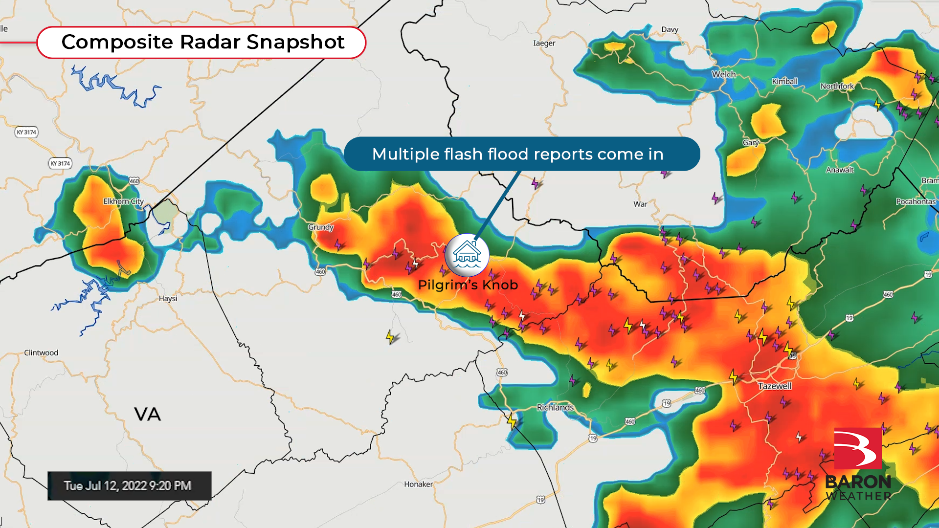 Las variables que conducen a una inundación repentina son siempre únicas, y éstas también tienen sus diferencias. Las inundaciones en el este de Tennessee se vieron probablemente exacerbadas por las fuertes precipitaciones que precedieron al complejo tormentoso principal, posiblemente ayudadas por la elevación adicional de la atmósfera desde las Smokey Mountains. Las células de tormenta en el suroeste de Virginia estuvieron formándose (repitiéndose) sobre las mismas zonas durante más de cuatro horas.